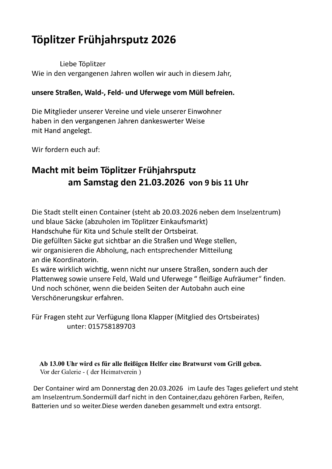 Liebe Töplitzerinnen und Töplitzer,